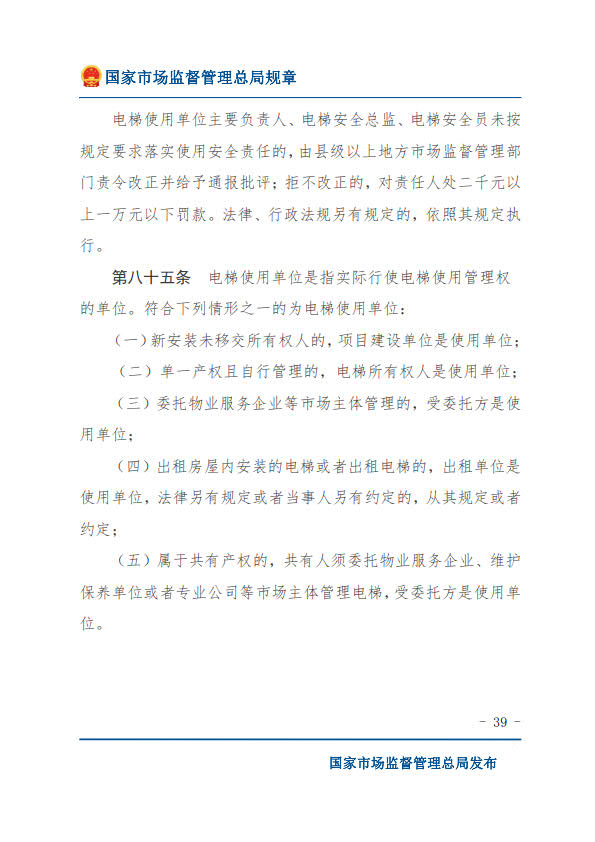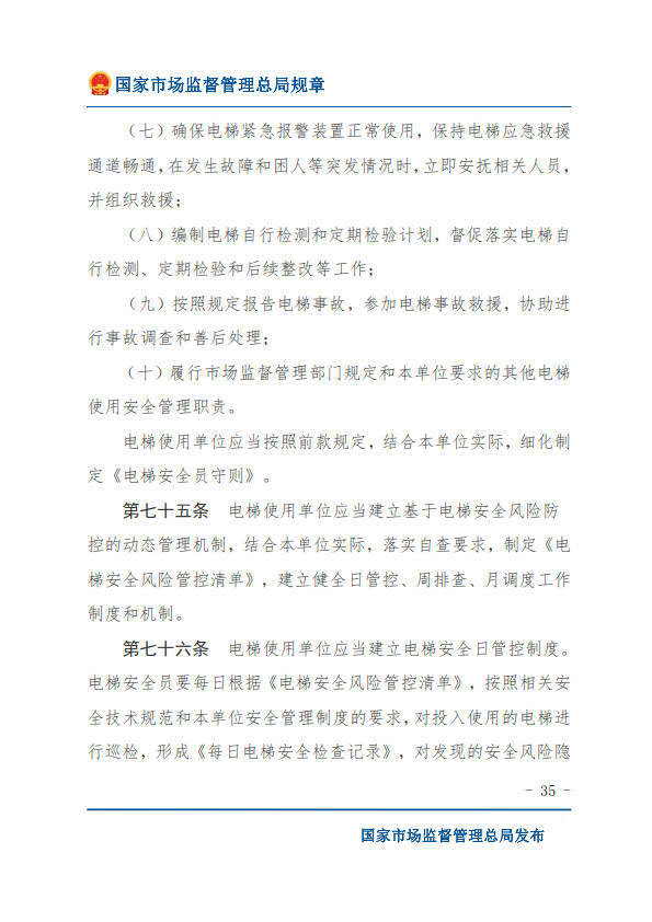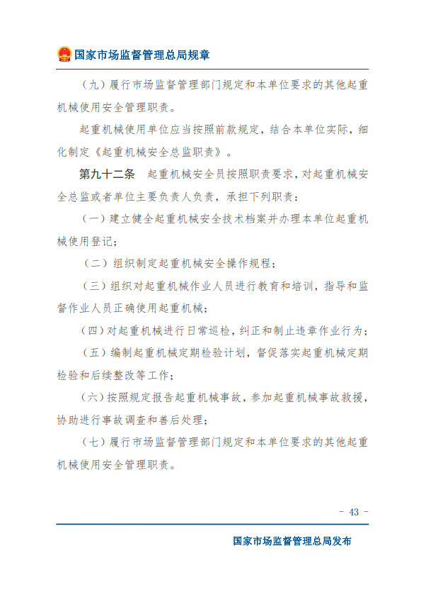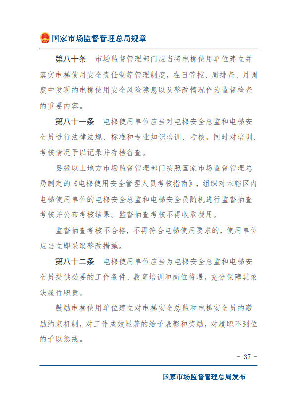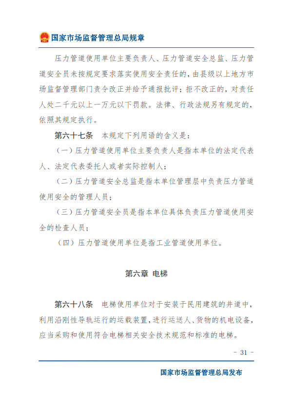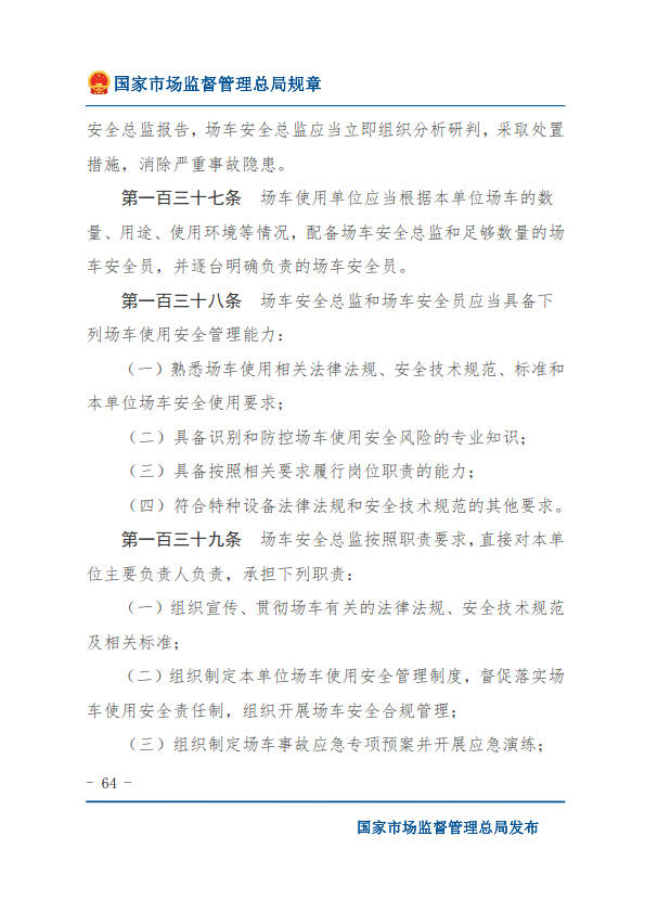 國(guó)家市場(chǎng)監(jiān)督管理總局令第74號(hào)特種設(shè)備使用單位落實(shí)使用安全主體責(zé)任監(jiān)督管理規(guī)定(2023年4月4日國(guó)家市場(chǎng)監(jiān)督管理總局令第74號(hào)公布 自2023年7月1日起施行)